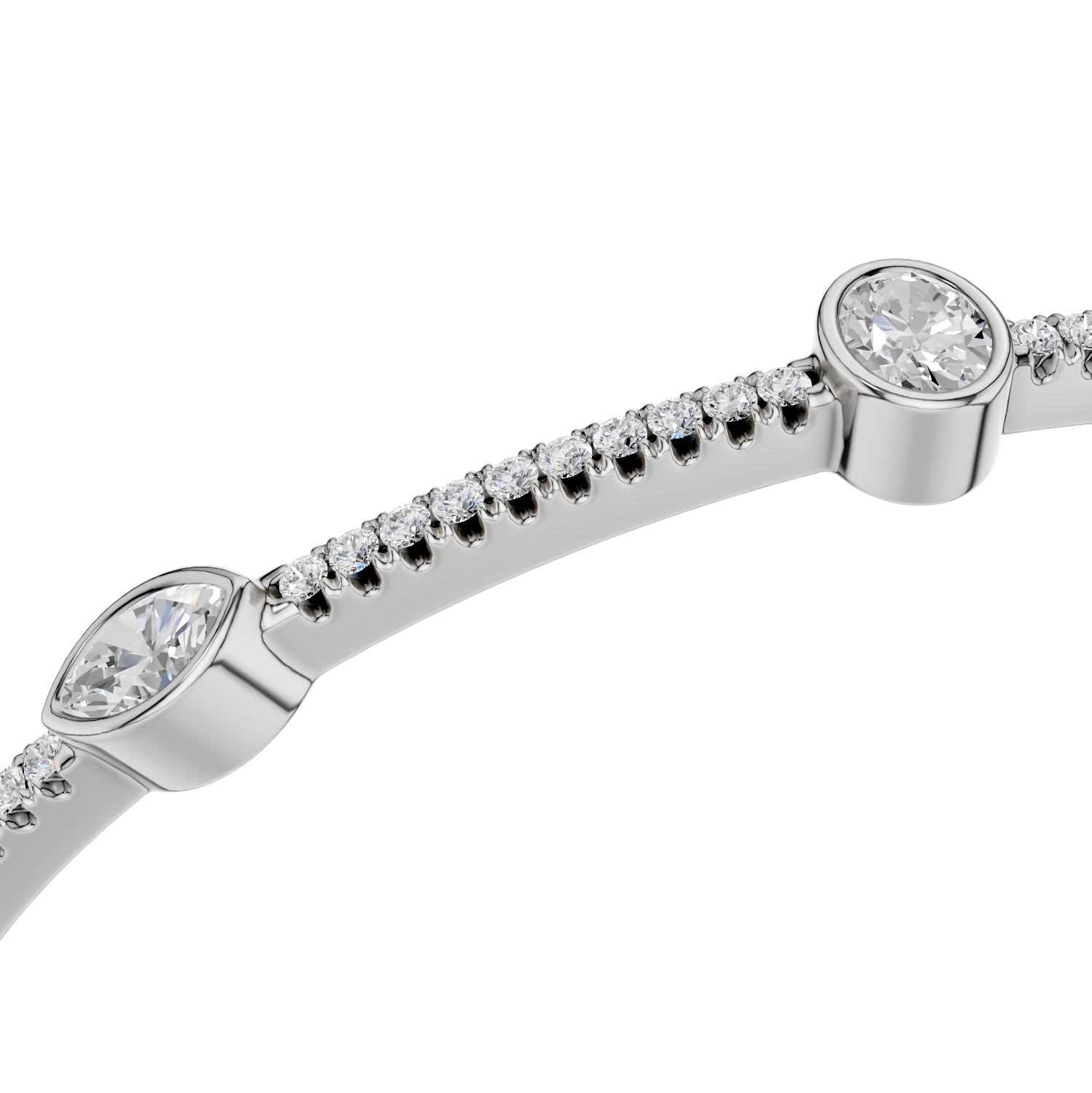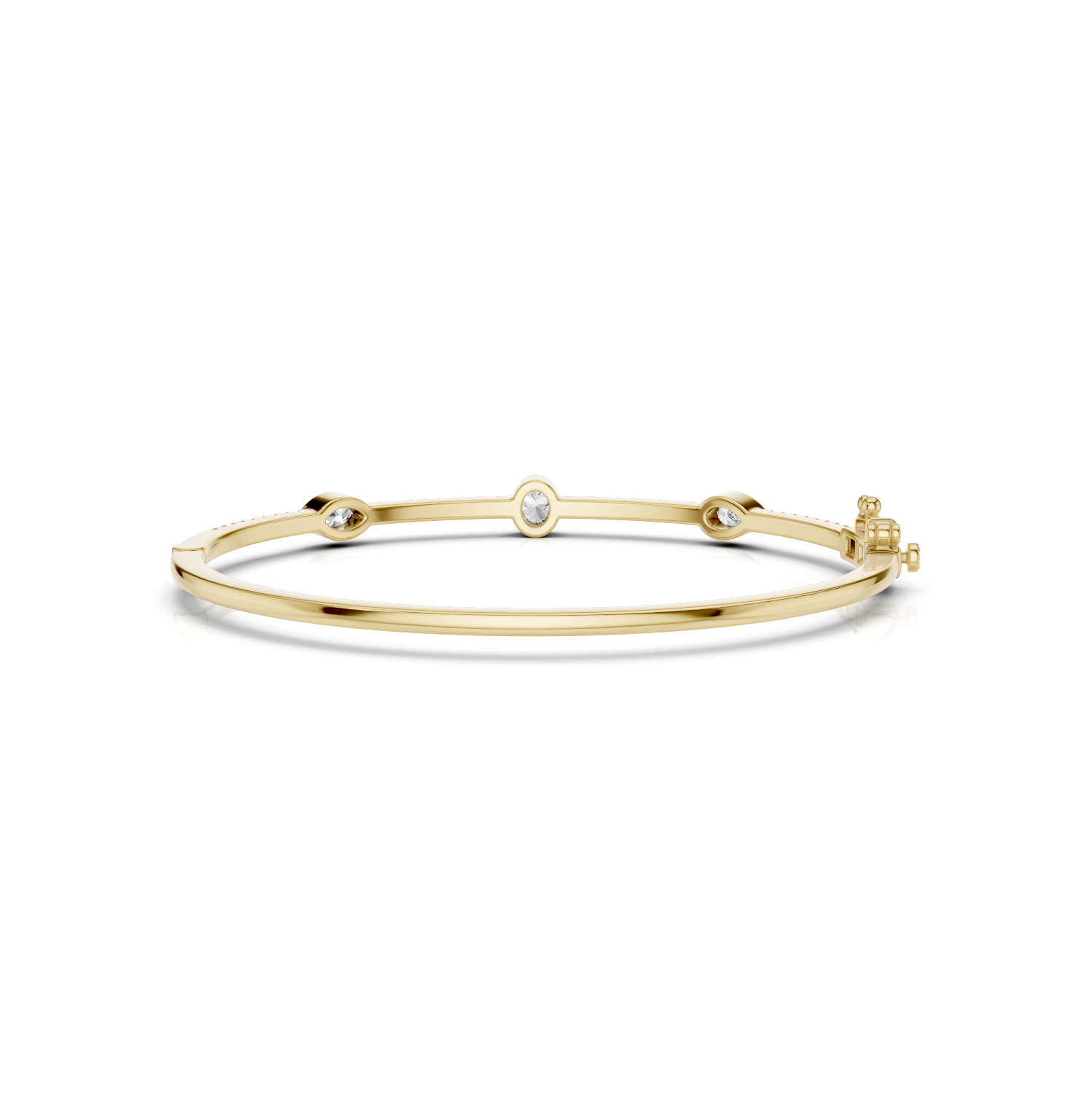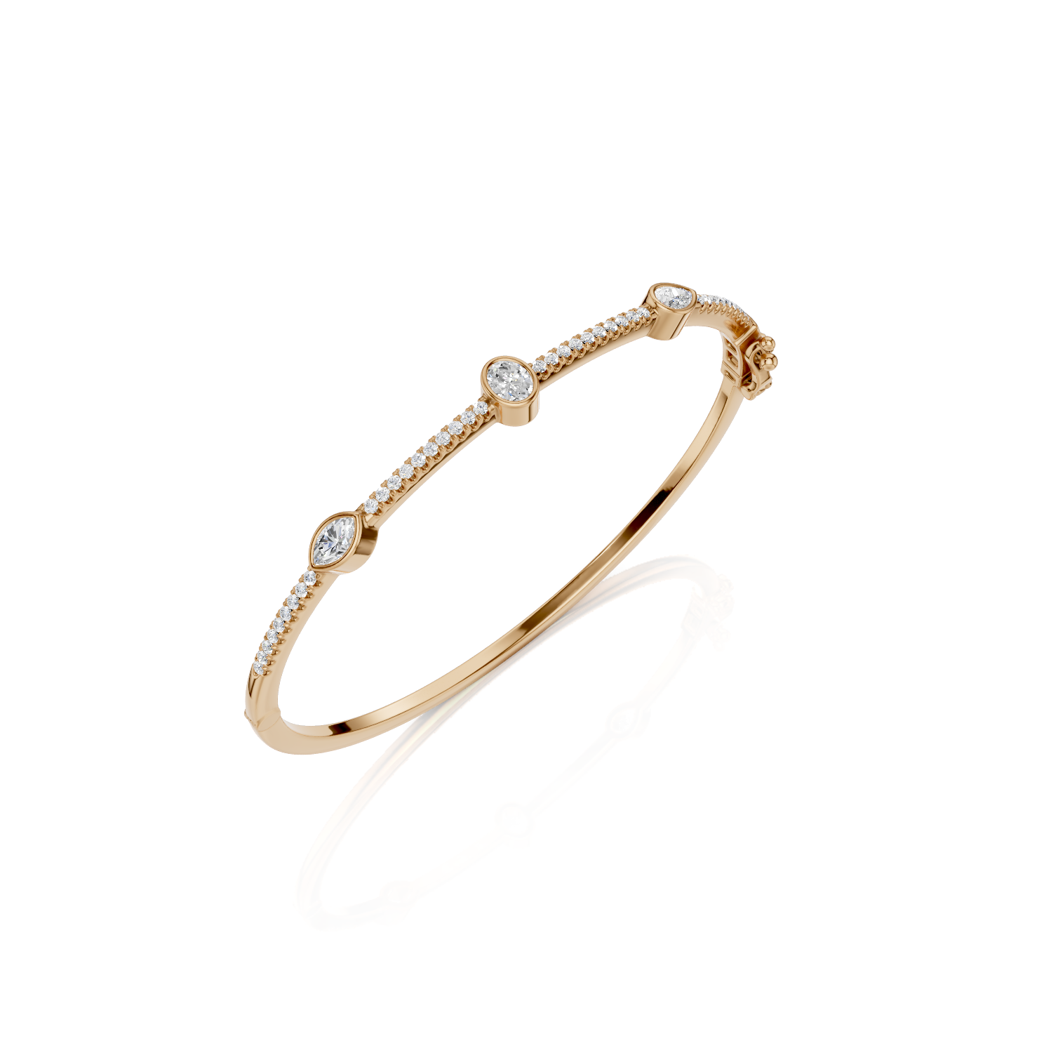 Der „ALEA“ Armreif vereint minimalistisches Design mit luxuriösem Glanz. Mit einer Gesamtkaratanzahl von 0,90ct fügen sich fein gefasste Diamanten in einer filigranen Linie zusammen, während drei größere, in Zargen gefasste Diamanten das Design akzentuieren. Die Kombination aus runden und tropfenförmigen Steinen verleiht dem Schmuckstück eine außergewöhnliche Eleganz, die es zum perfekten Begleiter für jede Gelegenheit macht.
