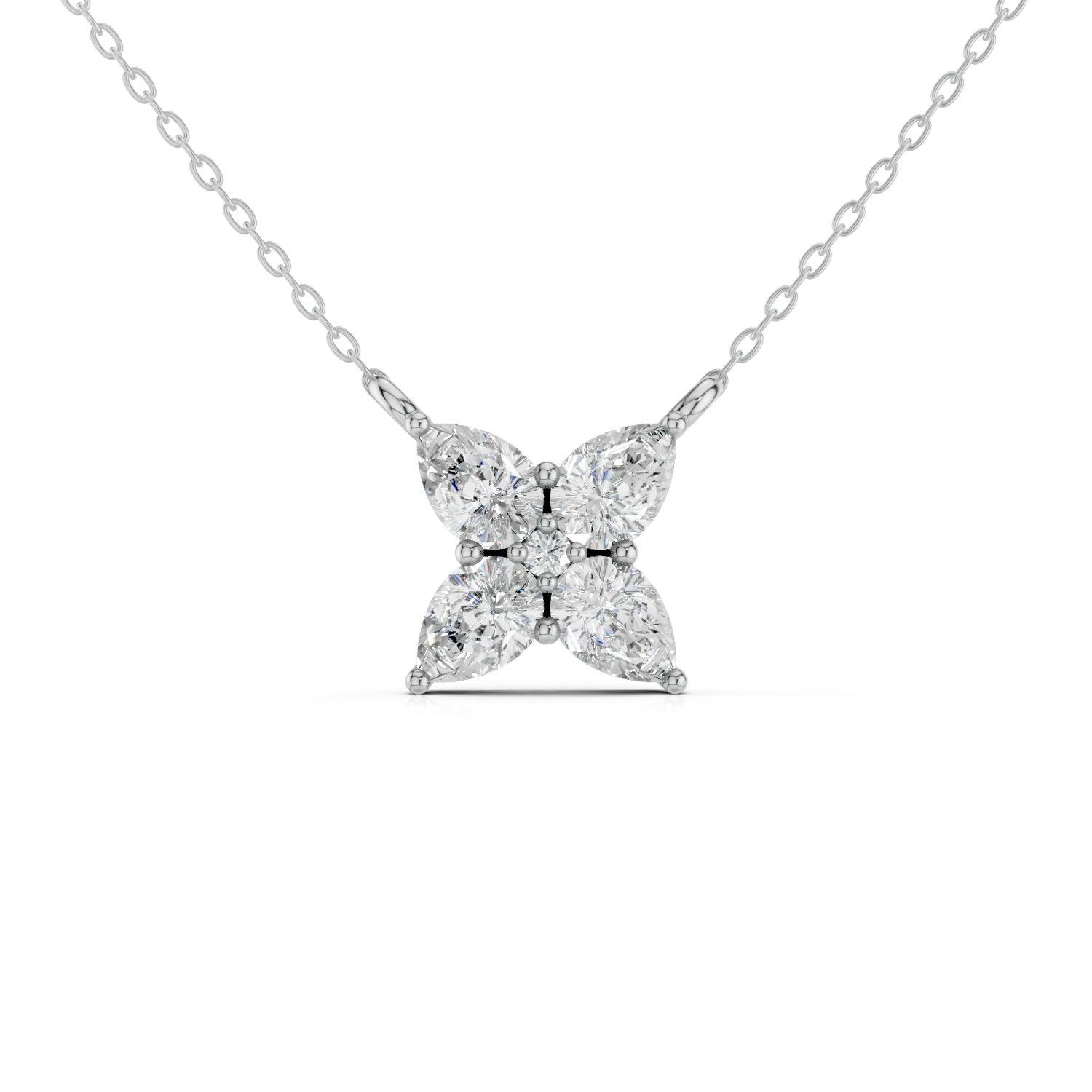 Die „FLORENTINE“ Halskette ist ein wahres Meisterwerk aus funkelnden Lab Grown Diamanten, inspiriert von der natürlichen Schönheit einer Blüte. Vier exquisite Tropfenschliff-Diamanten (je 0.50ct) formen ein anmutiges Blumenmotiv und fangen das Licht aus jedem Winkel perfekt ein. Dieses Design vereint Raffinesse mit außergewöhnlichem Glanz und setzt ein elegantes Statement.