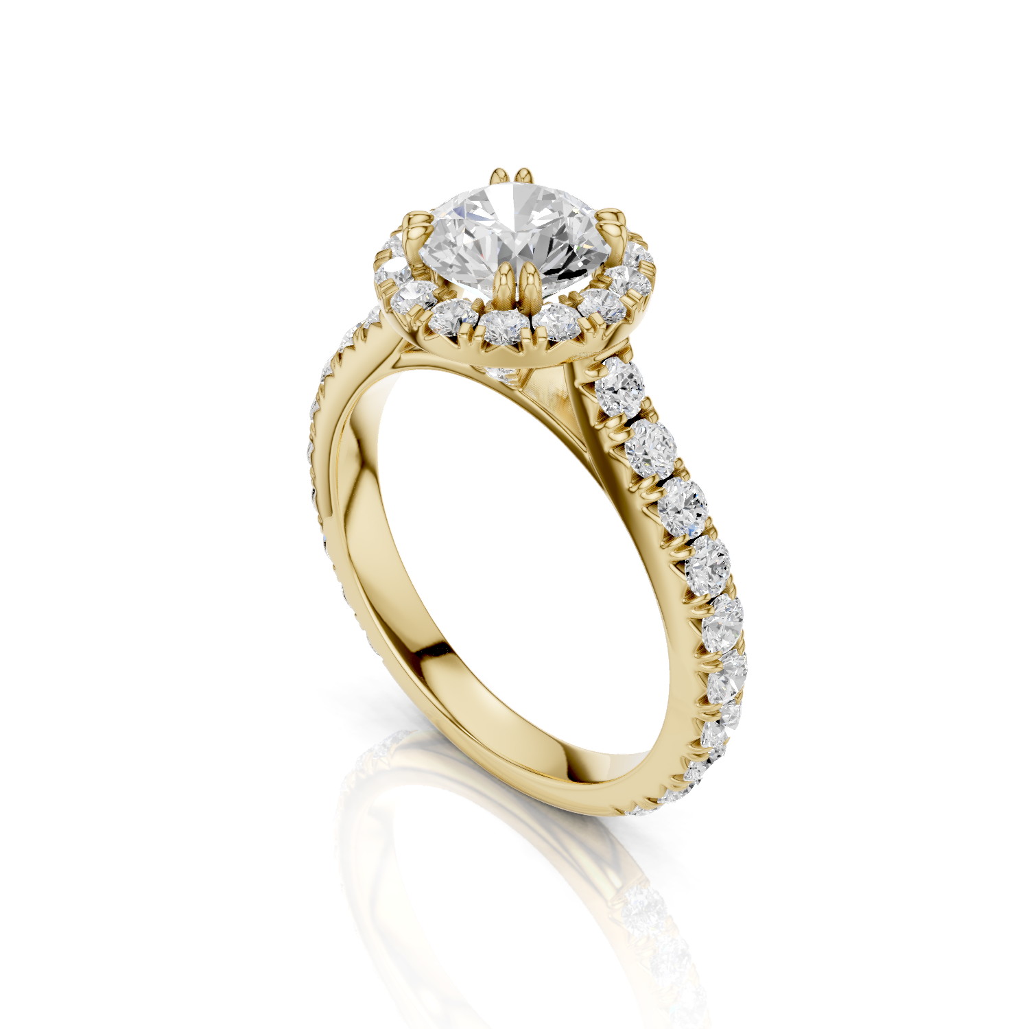 Fassung: Halo-Fassung, umrahmt von kleineren Brillanten für noch mehr Strahlkraft