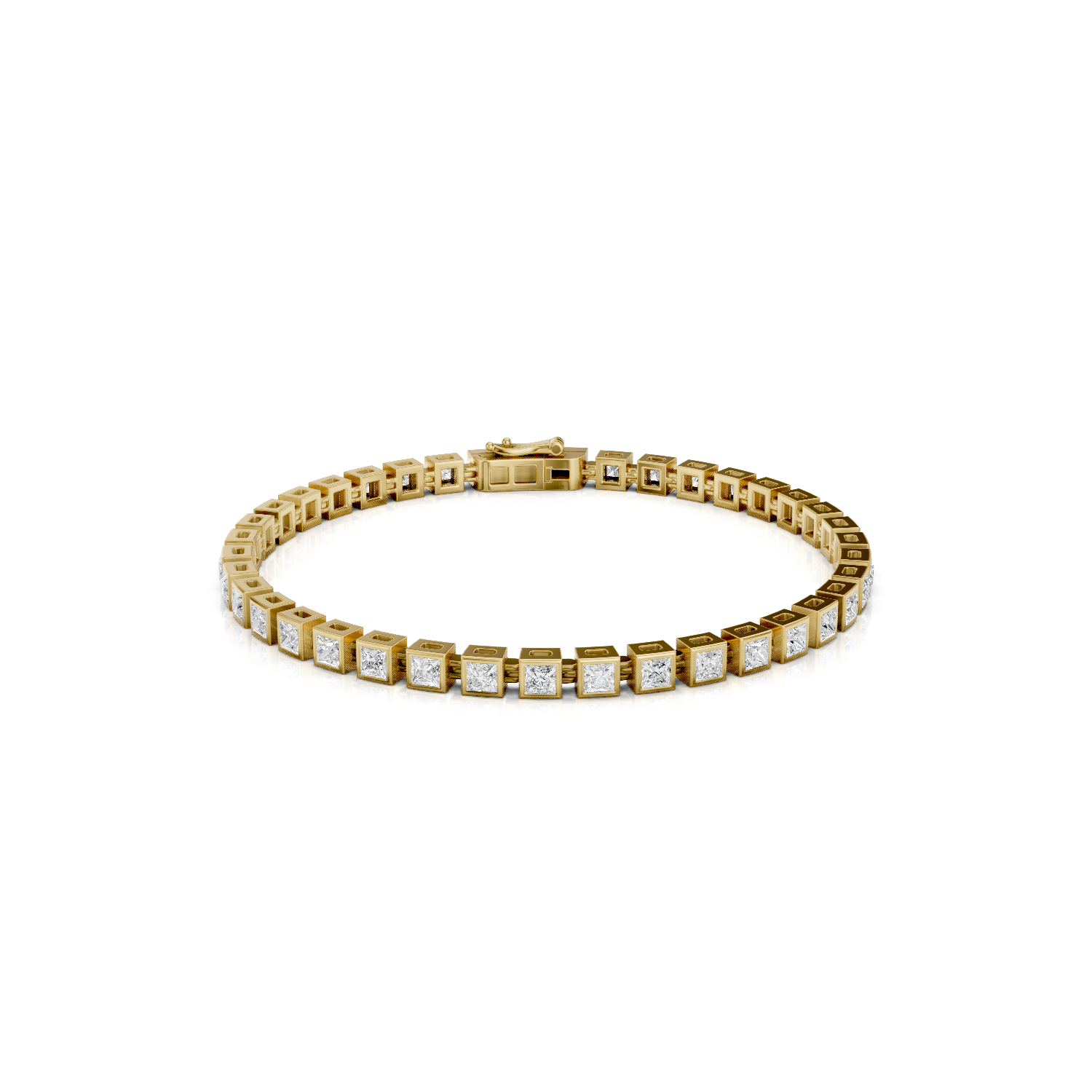 Das „KLARA“ Armband beeindruckt mit seiner modernen, geometrischen Ästhetik und exquisiten Diamantbesetzung. Die präzise gefassten Diamanten in den Größen 0,03ct, 0,05ct, 0,11ct und 0,15ct verleihen diesem Schmuckstück eine harmonische Leuchtkraft, während die quadratische Zargenfassung eine perfekte Balance zwischen moderner Eleganz und zeitlosem Stil schafft.