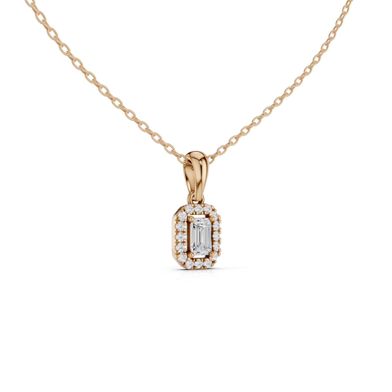 Die „LUISE“ Halskette vereint zeitlose Schönheit mit modernem Glanz. Ihr Herzstück ist ein strahlender Lab Grown Diamant im Smaragdschliff, kunstvoll umrahmt von einem funkelnden Halo aus feinen Brillanten. Dieses edle Design fängt das Licht auf besondere Weise ein und verleiht der Trägerin eine unvergleichliche Ausstrahlung.