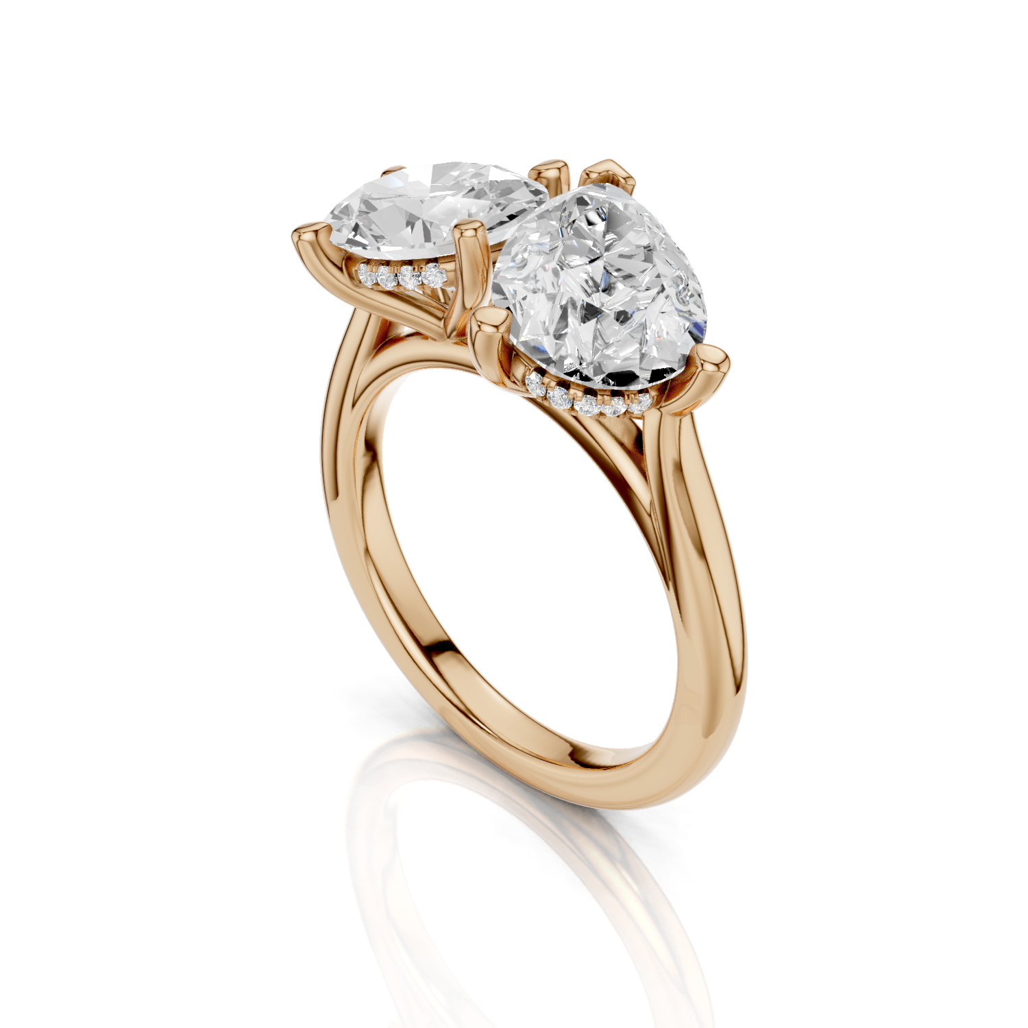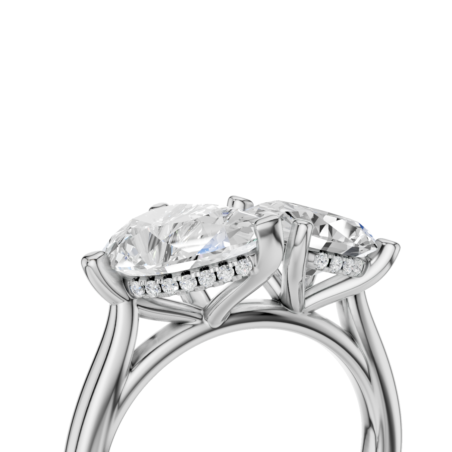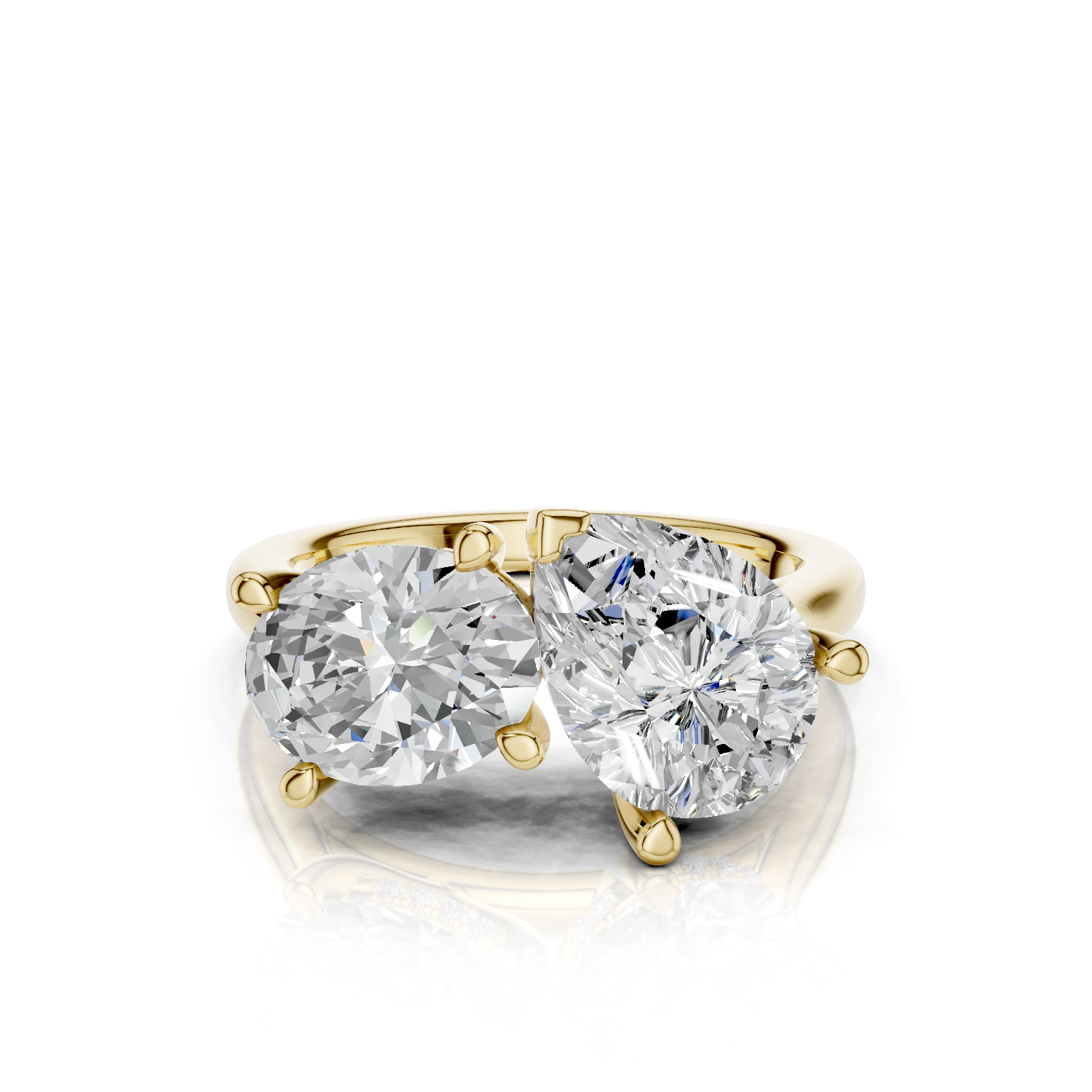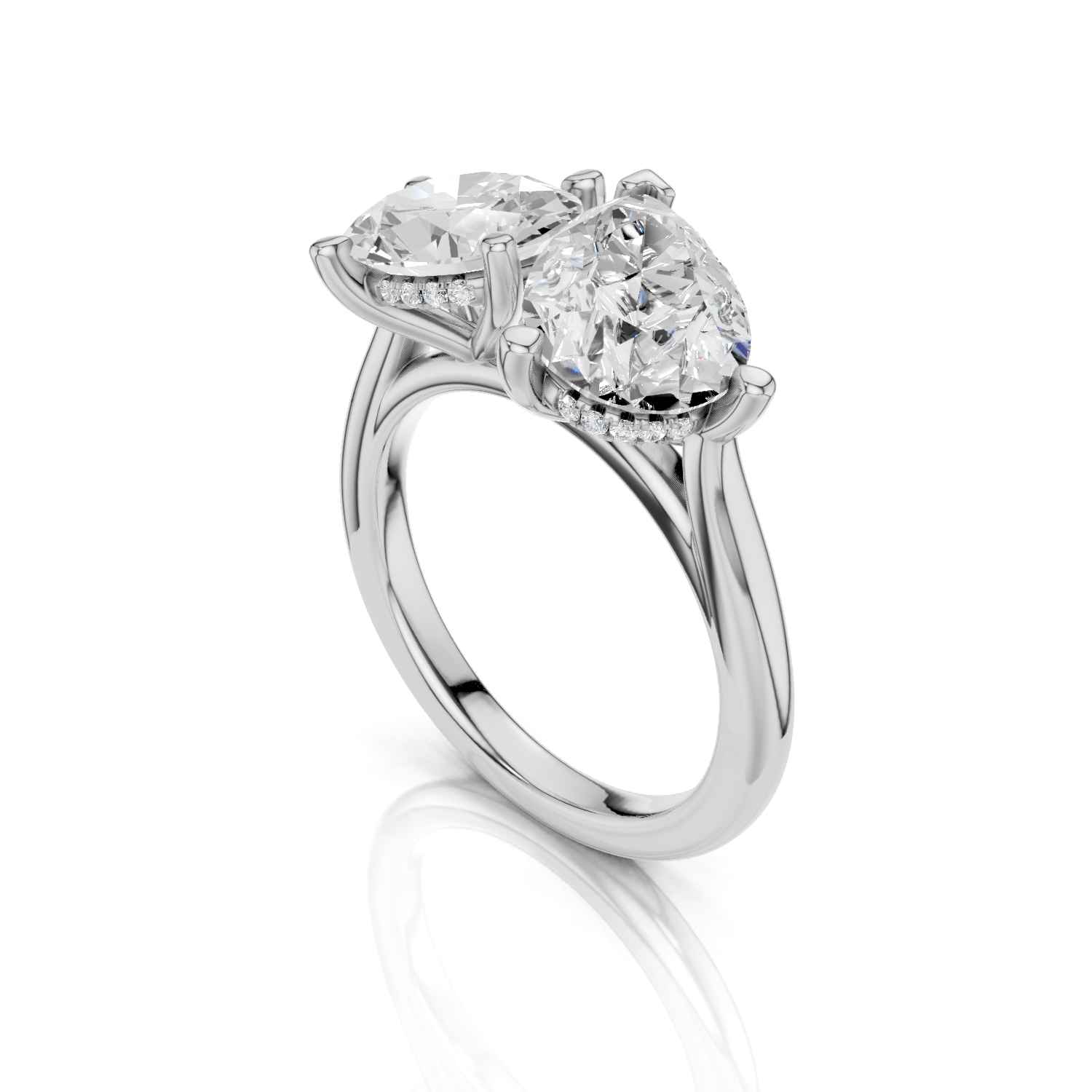 Der „SHELLY“ Ring ist ein einzigartiges Schmuckstück, das zwei ikonische Diamantformen in perfekter Balance vereint. Die Kombination aus einem 1,81ct Tropfen-Schliff Diamanten und einem 1,36ct Oval-Schliff Diamanten verleiht diesem Ring eine außergewöhnliche Eleganz und Modernität.