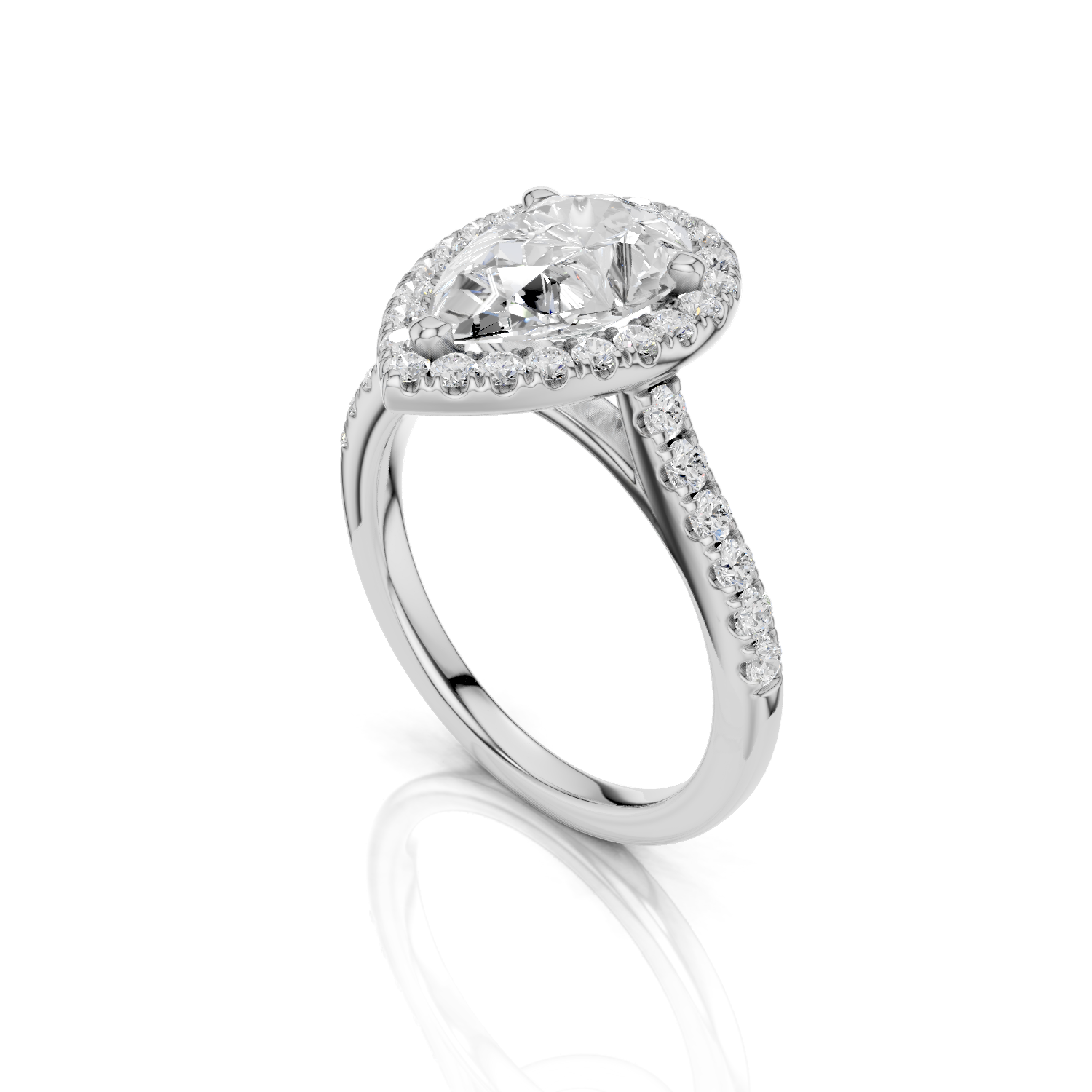 Der „SOPHIE“ Ring ist eine atemberaubende Interpretation klassischer Eleganz. Der prachtvolle Tropfen-Schliff Diamant wird von einem funkelnden Brillant-Halo umrahmt, wodurch das Licht optimal reflektiert wird und für ein außergewöhnliches Strahlen sorgt.
