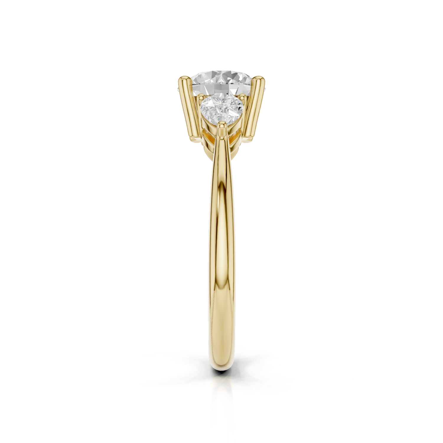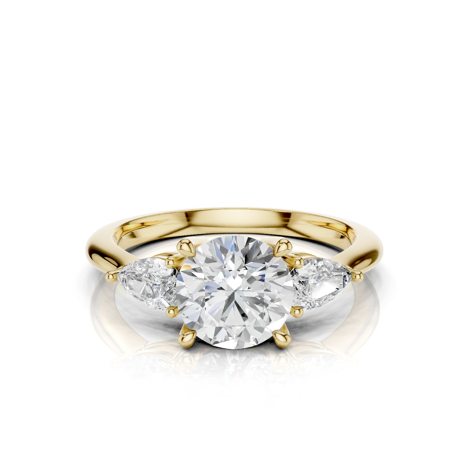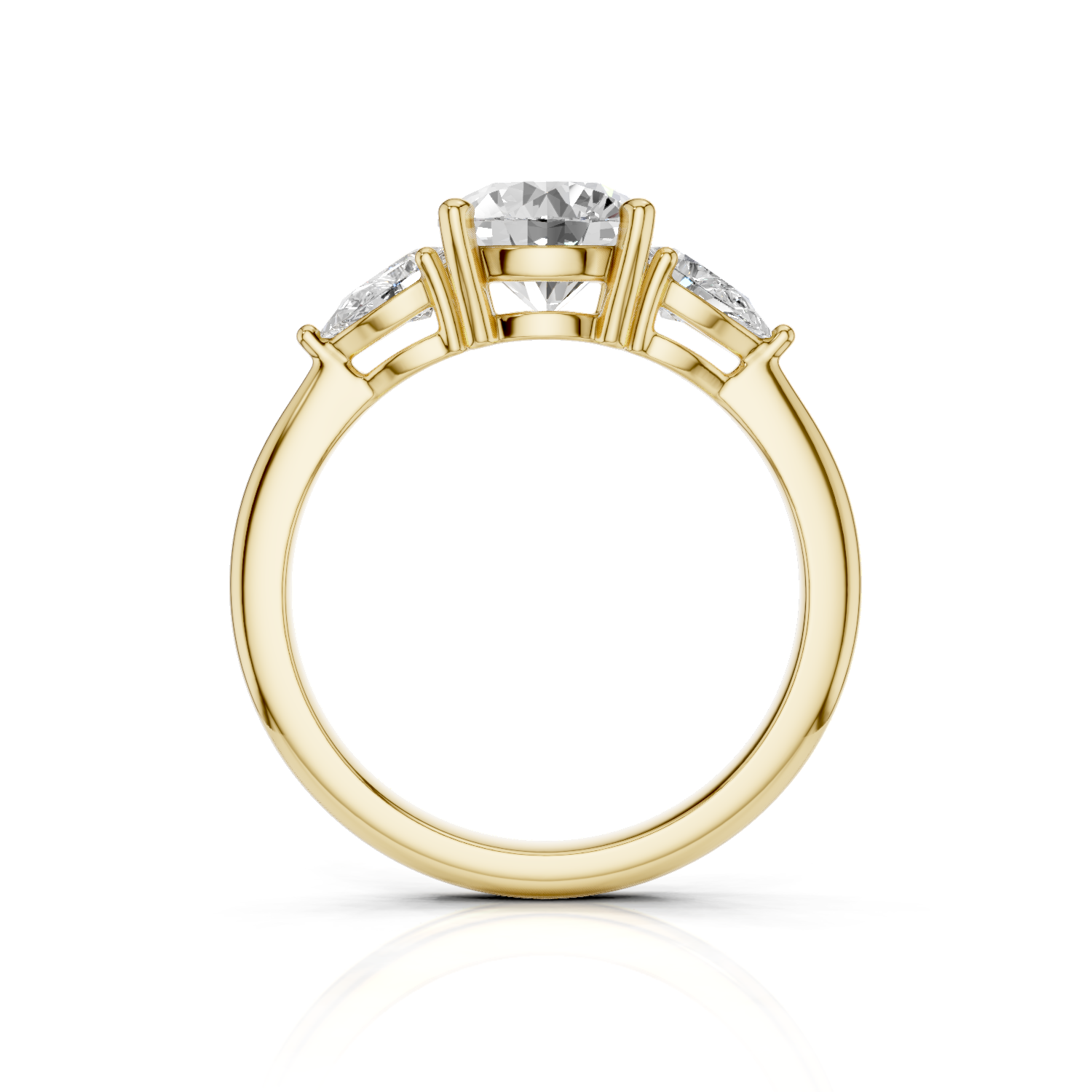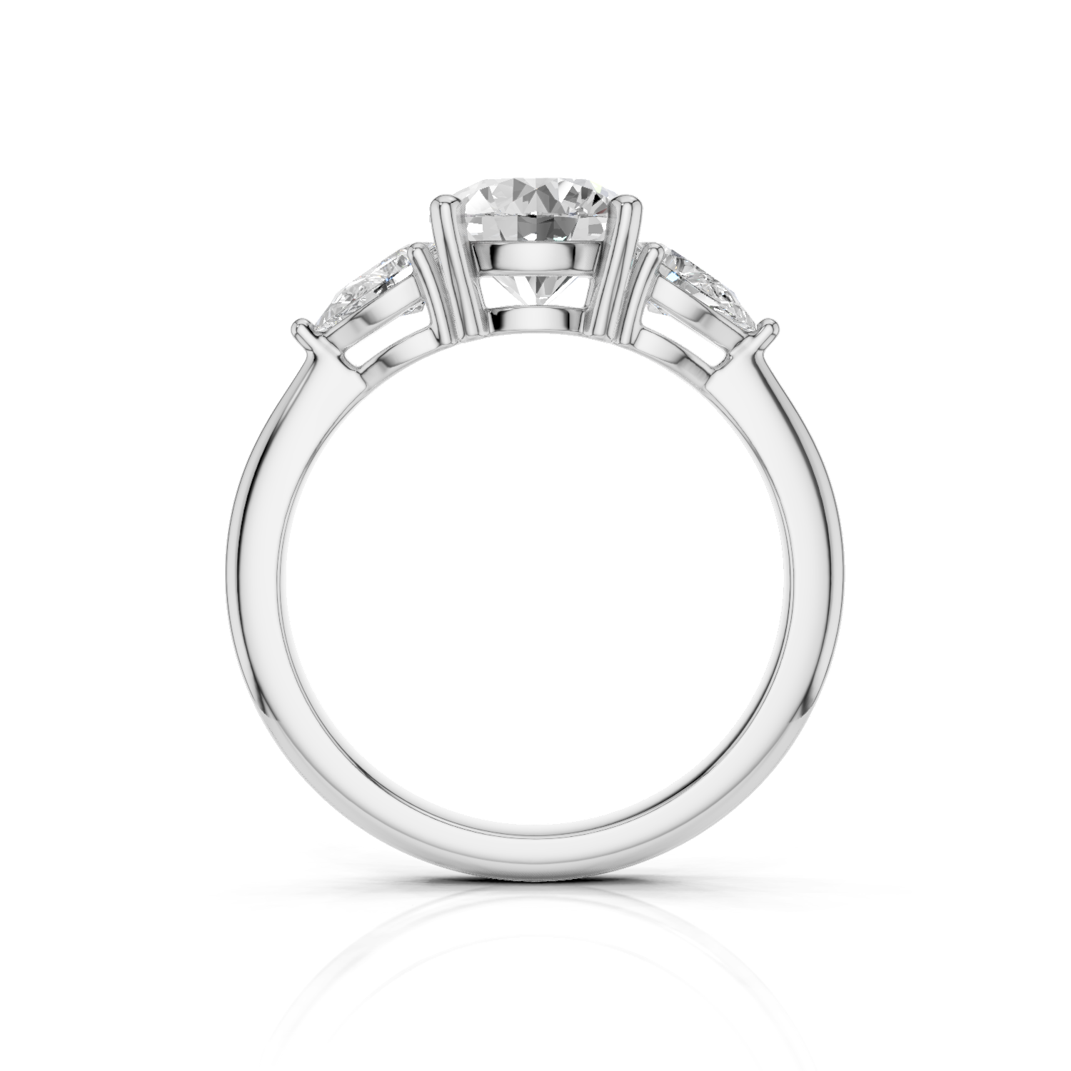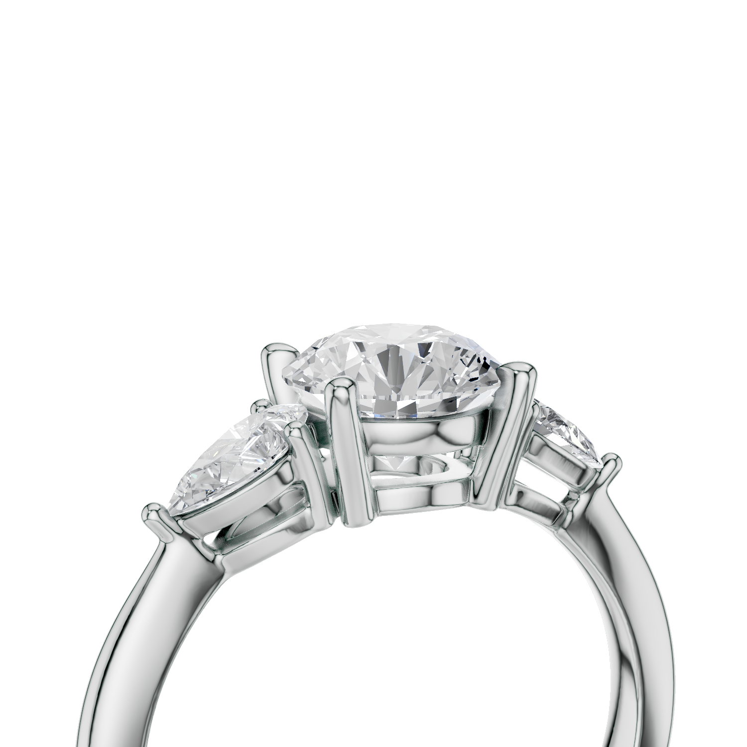 Der „THEA“ Verlobungsring ist ein Symbol für die Vergangenheit, Gegenwart und Zukunft einer einzigartigen Liebesgeschichte. Der zentrale Lab Grown Diamant im Brillantschliff wird von zwei funkelnden Tropfenschliff-Diamanten flankiert, die das Licht perfekt einfangen und dem Ring eine außergewöhnliche Brillanz verleihen. Die klassische Krappenfassung sorgt für maximalen Lichteinfall und betont die Eleganz dieses bedeutungsvollen Designs.